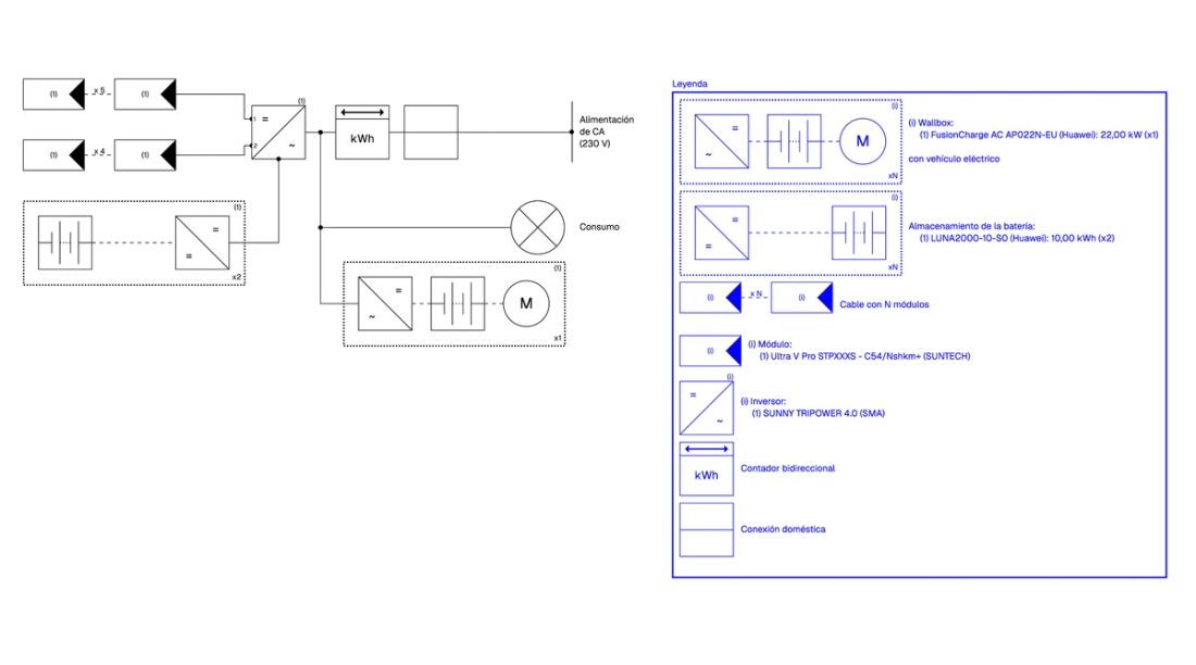 - Consumos de vivienda y cargador de vehículo eléctrico de 22 kW