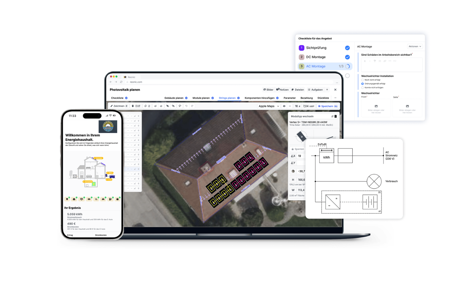 Reonic è la soluzione tutto-in-uno: dal dimensionamento alla simulazione 3D, fino alla gestione completa del progetto e all’installazione.